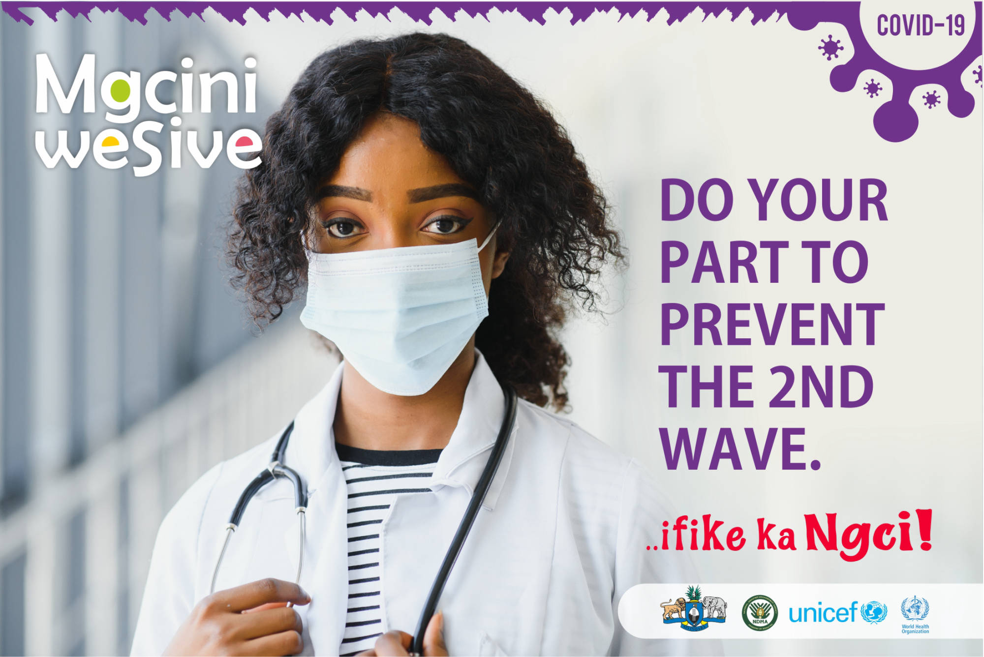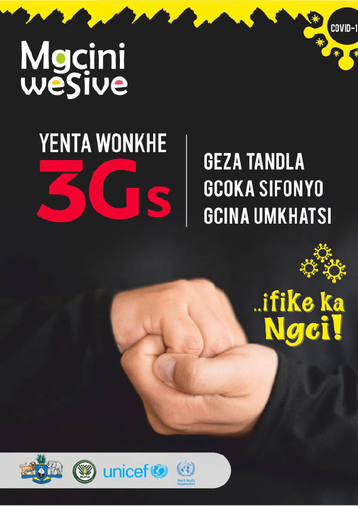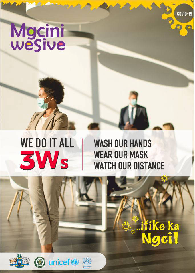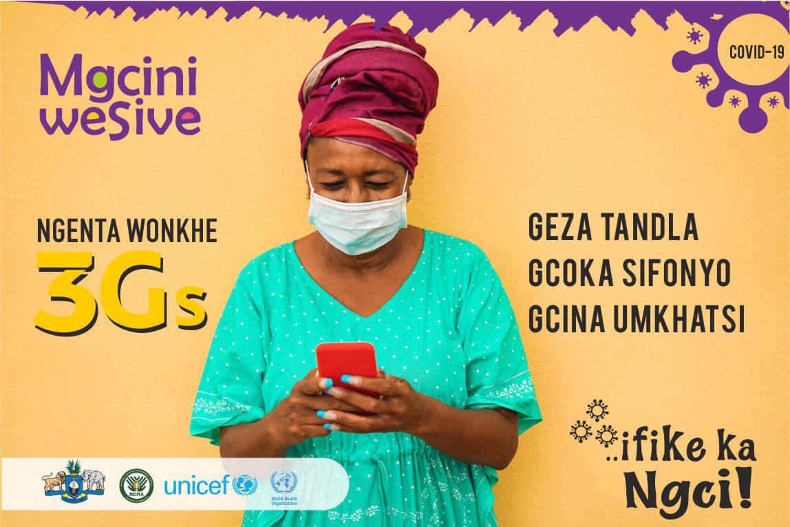 Mgcini WeSive – A SOCIAL BEHAVIORAL CHANGE CAMPAIGN developed by the National Disaster Management Agency (NDMA) in partnership with the Ministry of Health, UNICEF and WHO as a response to the ongoing COVID-19 Pandemic.